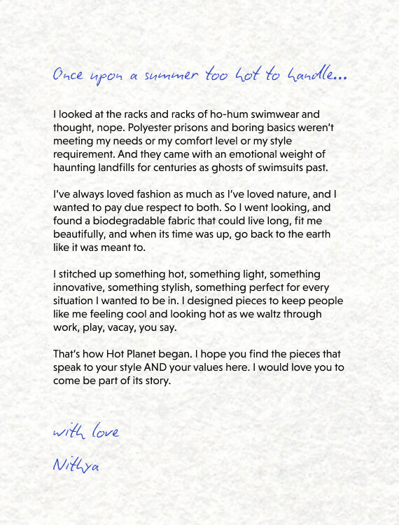 Being an eco-warrior doesn’t mean compromising on style, hun. We pair traditional cuts with saucy prints, edgy silhouettes with modern ease, and trend-forward details with a conscience. Every design is a fusion of style and story, crafted to reflect who you are and how you want to feel.